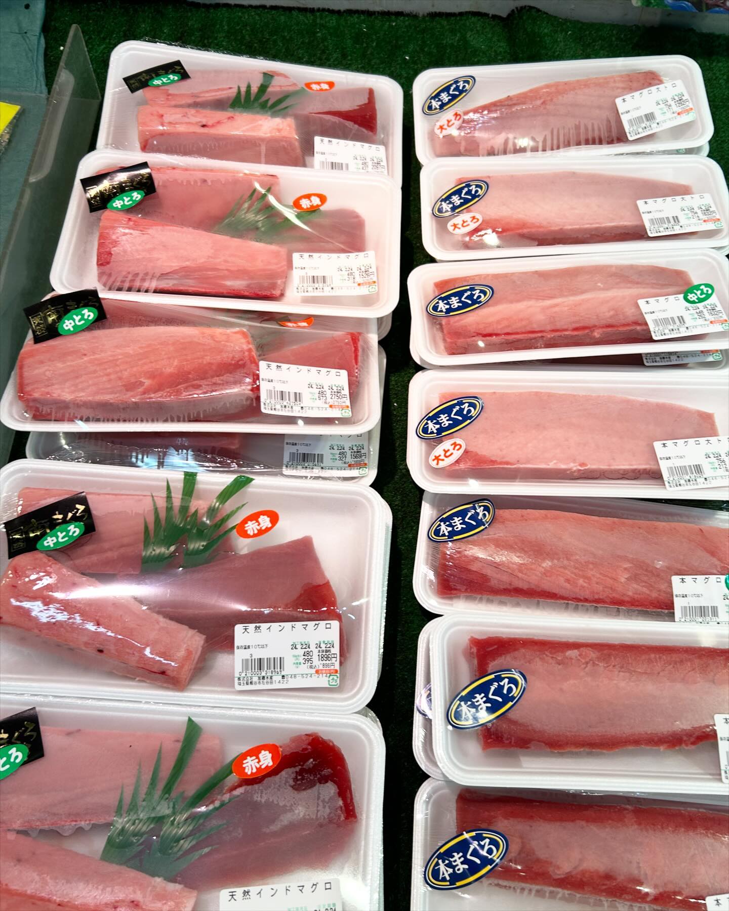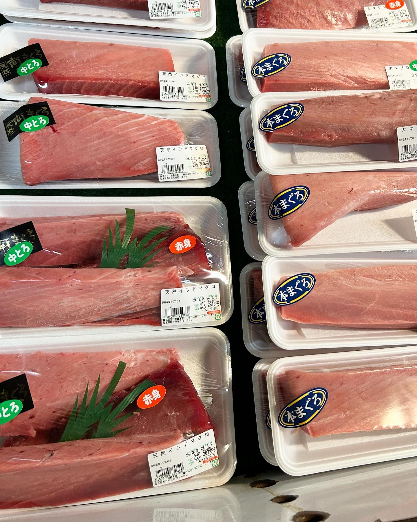 加藤水産始まってまーす! 今日は天然本鮪大トロ、中トロ、赤身 天然インドマグロ、中トロ赤身セット お馴染みの天然メバチマグロ、中トロ、赤身など いろいろ揃えております🙇♂️ #本マグロ#クロマグロ#インドマグロ#南マグロ